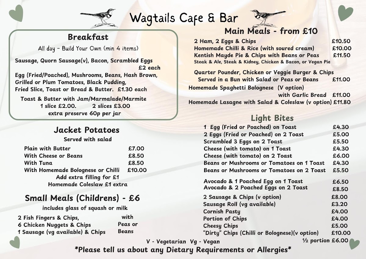 Wagtails Cafe and Bar is more than just a place to eat; it's about the experience. The friendly and attentive staff, as noted by numerous patrons, ensures that every visit is met with a warm welcome and excellent service, like Colin Palgrave who highlighted the waitress's attention to detail and the homey atmosphere. Whether you're enjoying a quiet solo meal or gathering for a social lunch like Joanne Shaw did during a charity event, the atmosphere is always uplifting and accommodating.